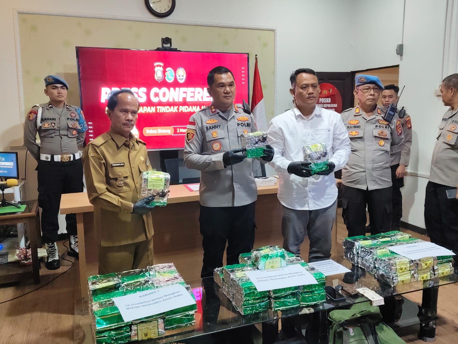 DAILYSINTANG.COM, SINTANG – Polres Sintang menggelar konferensi pers terkait pengungkapan kasus tindak pidana peredaran narkotika di wilayah Kabupaten Sintang, Senin 2 Maret 2026. Pengungkapan ini menjadi salah satu kasus besar yang berhasil diungkap jajaran Satuan Reserse Narkoba (Satresnarkoba) Polres Sintang.